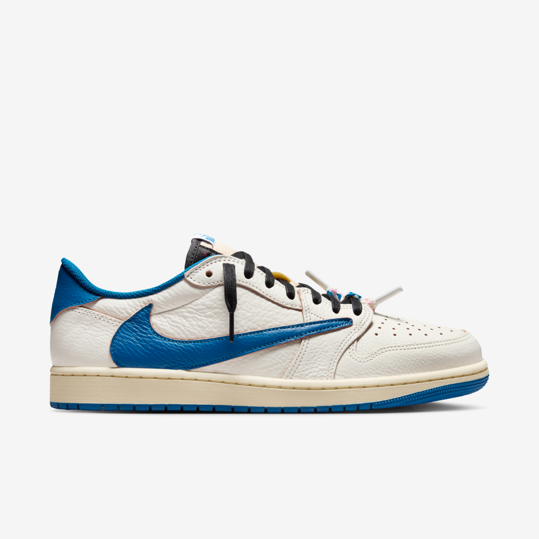 O Fragment x Travis Scott Jordan 1 Retro Low OG SP Sail Military Blue é a união de três forças gigantes: Jordan Brand, Travis Scott e Hiroshi Fujiwara (Fragment). O resultado é um dos Jordan 1 Low mais disputados dos últimos anos, combinando storytelling forte, execução premium e um visual instantaneamente reconhecível.